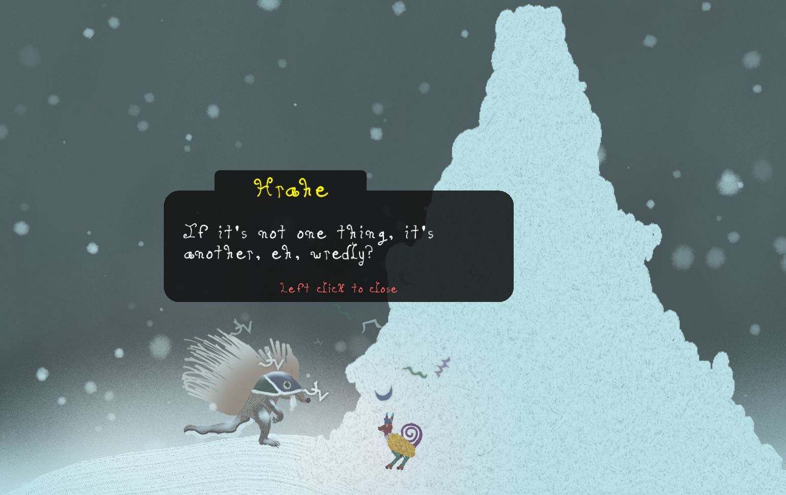 A cosy, thought-provoking game developed by Hazy Paw Games Inc. for EduJam: Art Saves the World, 2019.